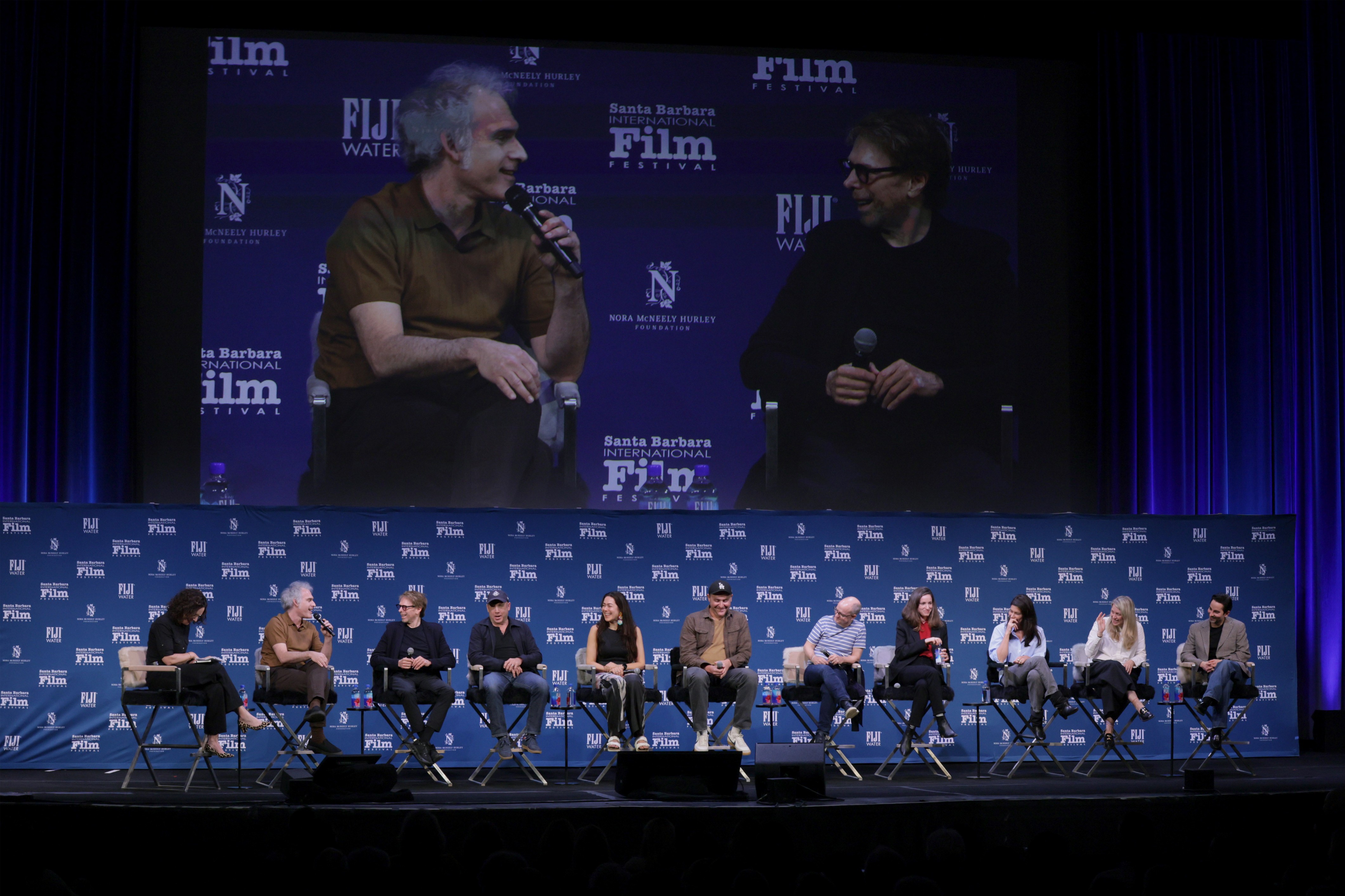 SANTA BARBARA, CALIFORNIA - FEBRUARY 08: (L-R) Nicole Sperling, Ronald Bronstein, Jerry Bruckheimer, J. Miles Dale, Maria Ekerhovd, Nicolas Gonda, Ed Guiney, Emilie Lesclaux, Marissa McMahon, Sara Murphy and Sev Ohanian speak onstage at the Producers Panel during the 41st Santa Barbara International Film Festival at The Arlington Theatre on February 08, 2026 in Santa Barbara, California. (Photo by Rebecca Sapp/Getty Images for Santa Barbara International Film Festival)