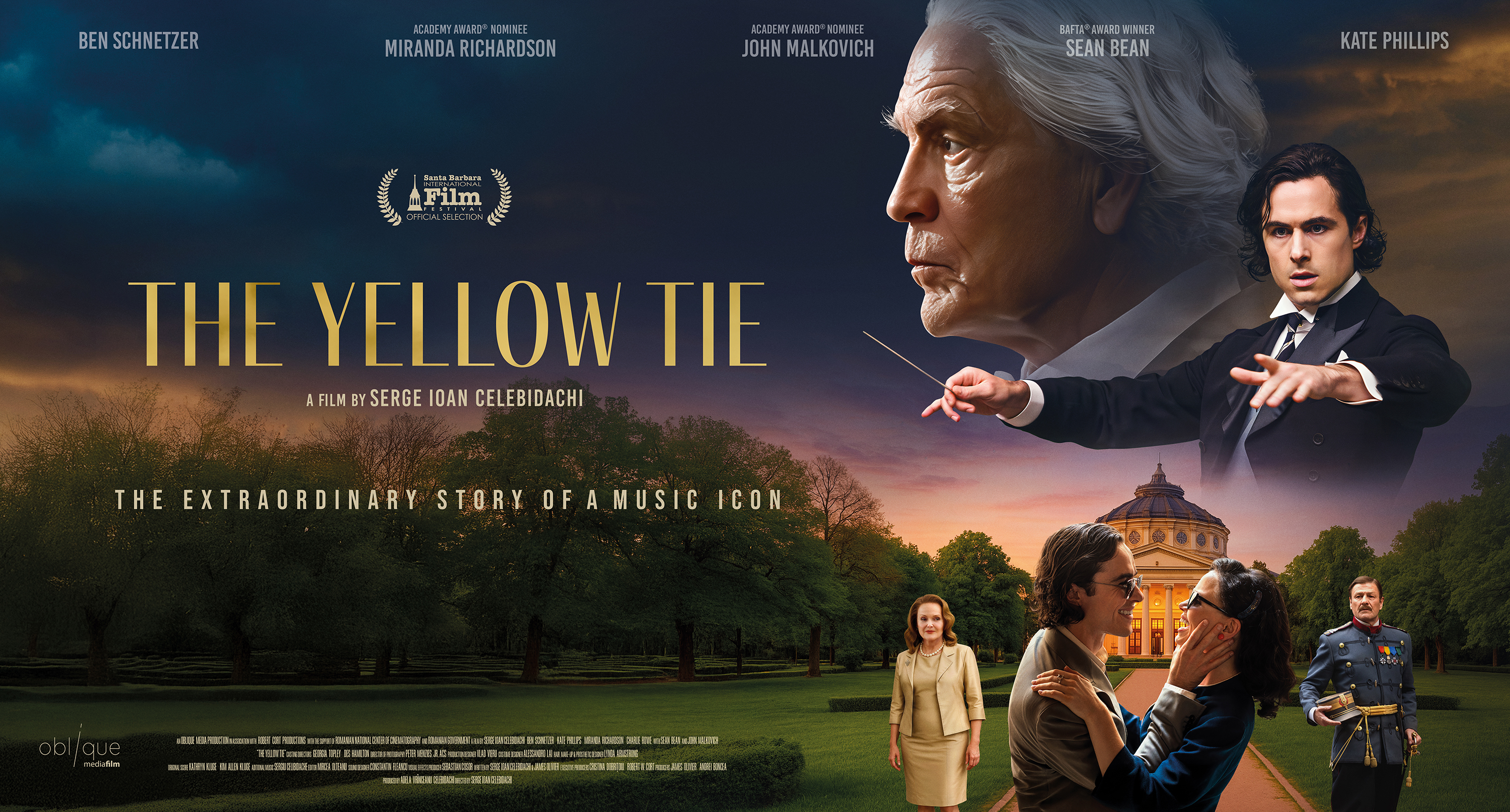 The film was directed by Serge Ioan Celebidachi, who also co-wrote the screenplay with James Olivier. The film’s producers are Adela Vrînceanu Celebidachi, Cristina Dobrițoiu, James Olivier, Andrei Boncea, and Hollywood veteran Robert W. Cort (Mr. Holland’s Opus). Elevating the production to a global standard is an elite creative team including celebrated cinematographer Peter Menzies Jr., ACS, costume designer Alessandro Lai, and Hair, Makeup and Prosthetics Designer Lynda Armstrong and complemented by an evocative score from Kathryn & Kim Allen Kluge. The film has a running time of 145 minutes. THE YELLOW TIE is an Oblique Media production, co-produced with Safe Frame, Avanpost Media, Frame Film, and Frame Film Illustrious Studio.